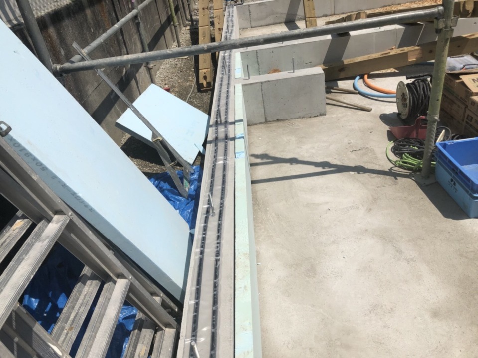 基礎工事が完了し、配管周りの防蟻処理を致しました。